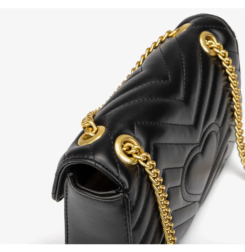 2025 High-end water ripple bag for women, classic chain bag, fashionable checkered heart-shaped women's bag, crossbody bag